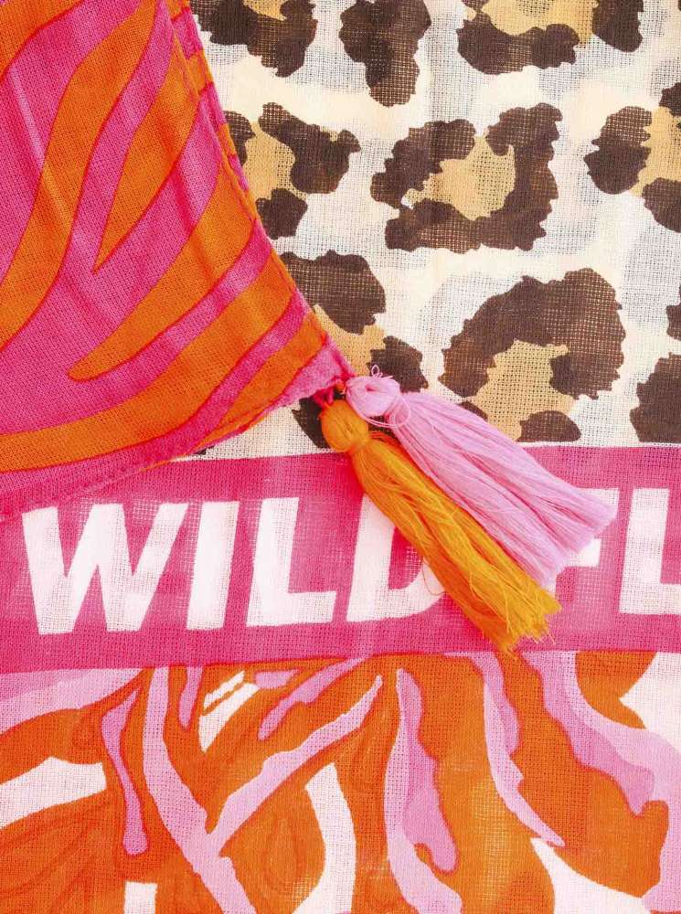 Der Schal "Wild Flower Zebra" verzaubert mit einem lebendigen Blumenmuster und weichem Stoff. Ideal, um jedem Look eine frische, feminine Note zu verleihen.