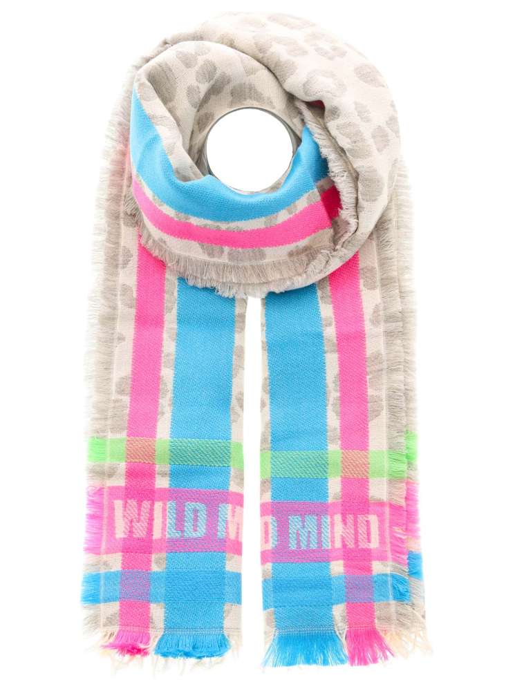 Ein Statement-Schal mit positiven Vibes und trendigen Fransen. Weich, warm und stylisch. Die perfekte Kombination aus 60 % Acryl, 25 % Baumwolle und 15 % Wolle für deinen einzigartigen Look.