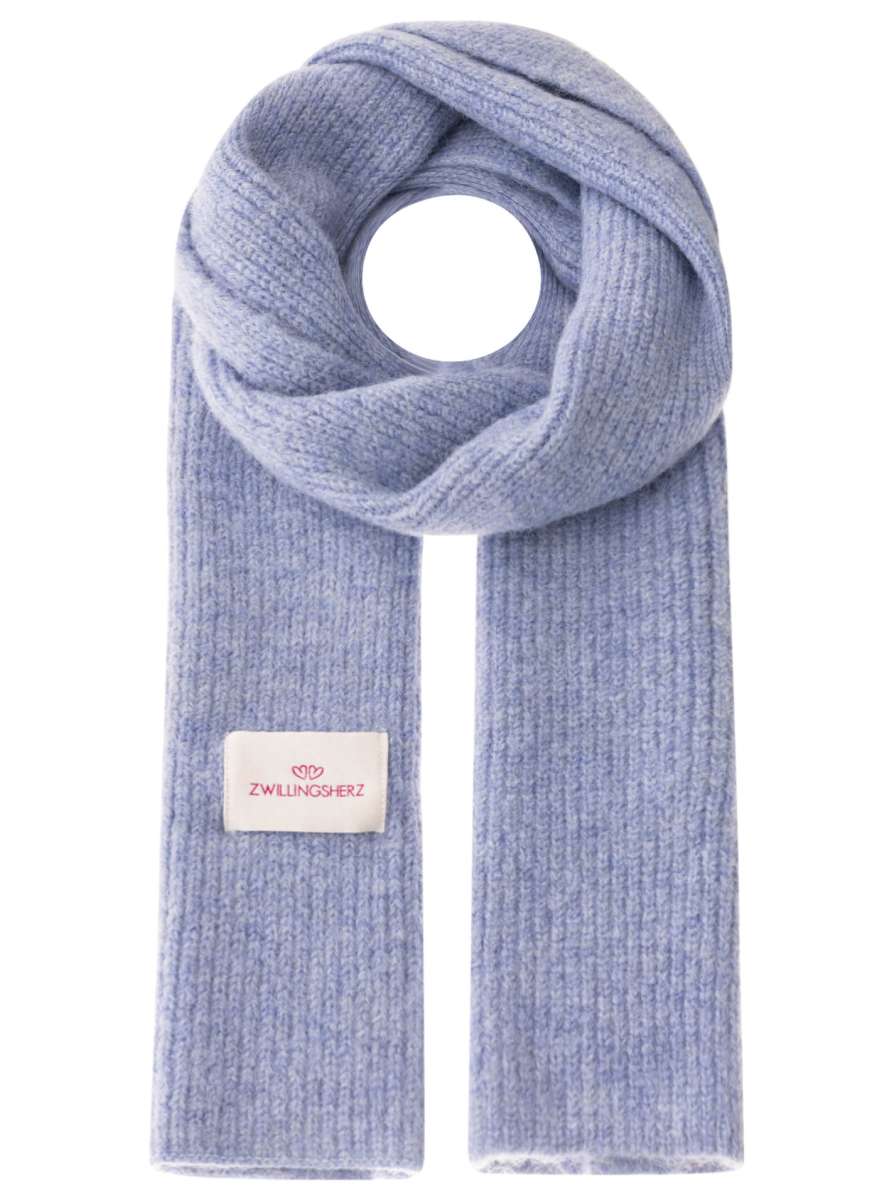 💕 Zwillingsherz Schal "Zwillingsherz Patch" Wolle gerippt Hellblau