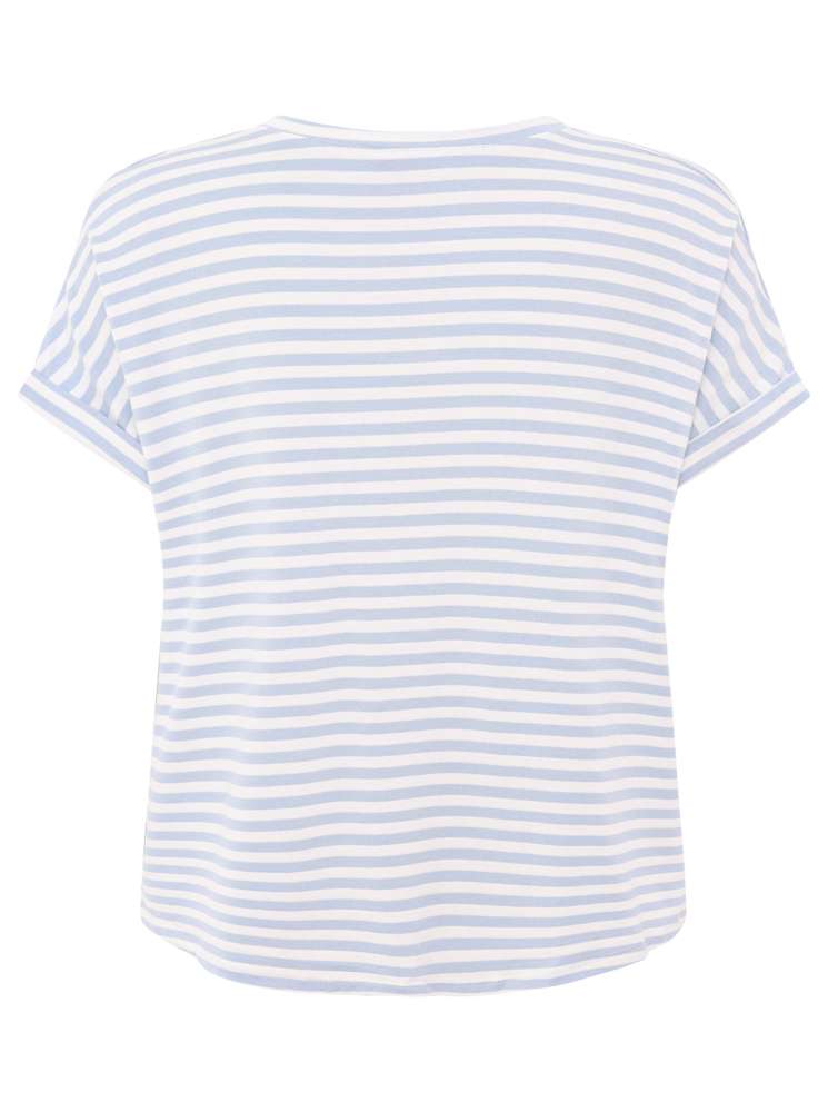Dieses T-Shirt mit maritimen Streifen ist perfekt für einen entspannten und lässigen Look. Die klassischen Streifen verleihen ihm einen zeitlosen maritimen Charme, der zu jedem Anlass passt. Ein vielseitiges Basic, das deinem Outfit eine frische Brise verleiht.