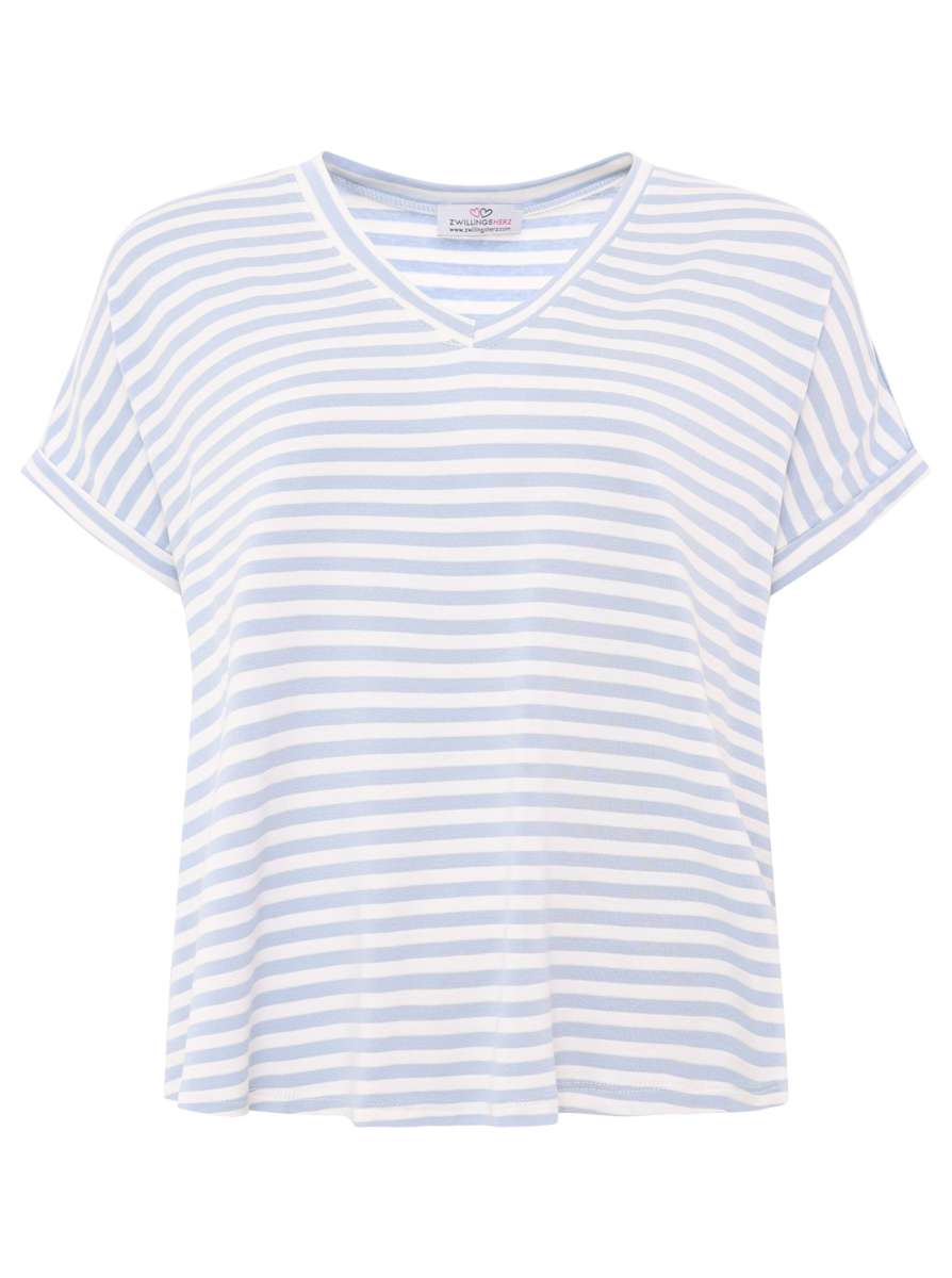 💕 Zwillingsherz Shirt "Maritime Streifen" Viskose Hellblau