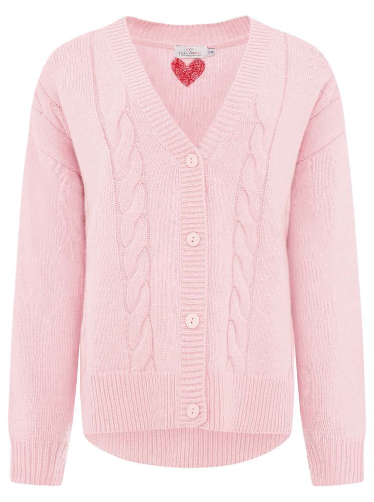 đź’• Zwillingsherz Strickjacke Cardigan Zopfstrick "Herz" Wolle Rosa