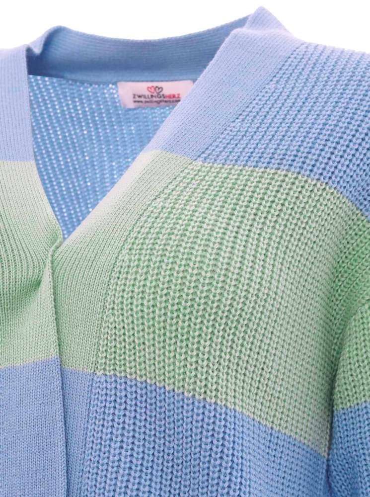 đź’• Zwillingsherz Strickjacke "Katja" Merinowolle Streifen Hellblau Mint
