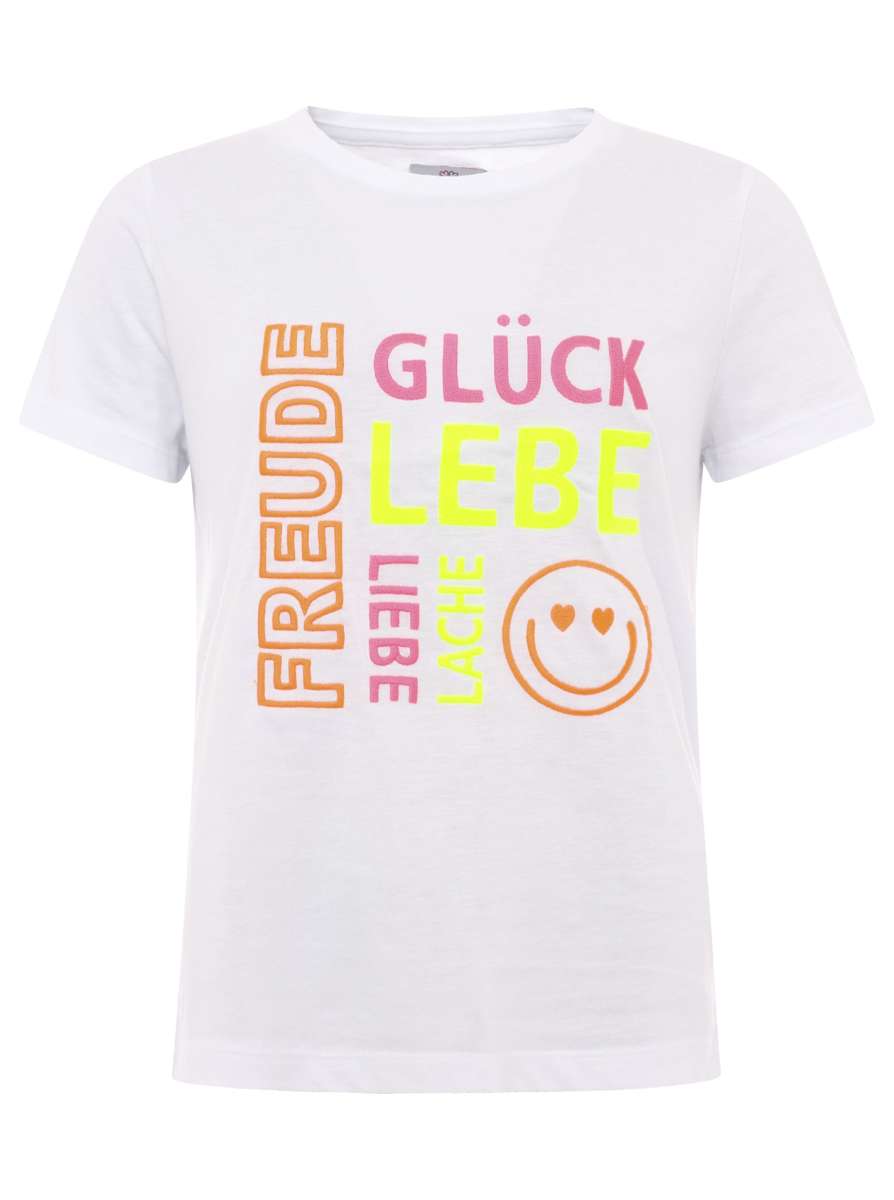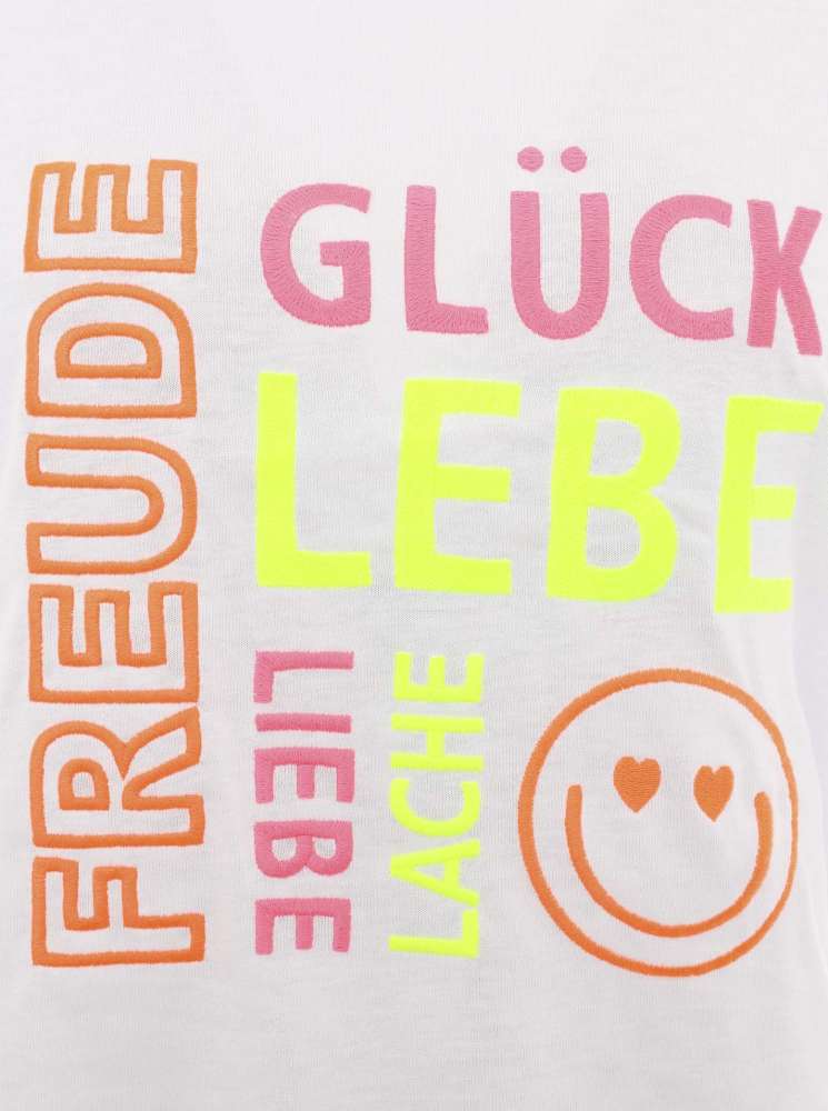 Zwillingsherz T-Shirt mit Stickerei "Freude Glück Lebe"