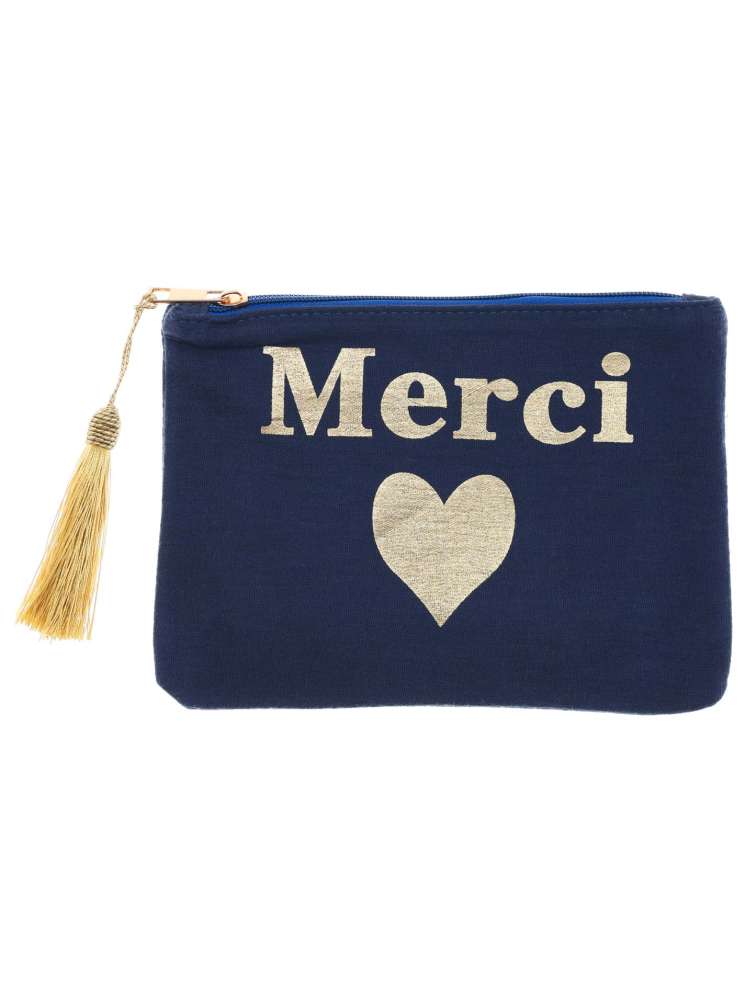 💕 Zwillingsherz Kosmetiktasche "Merci" Danke Pouch Blau