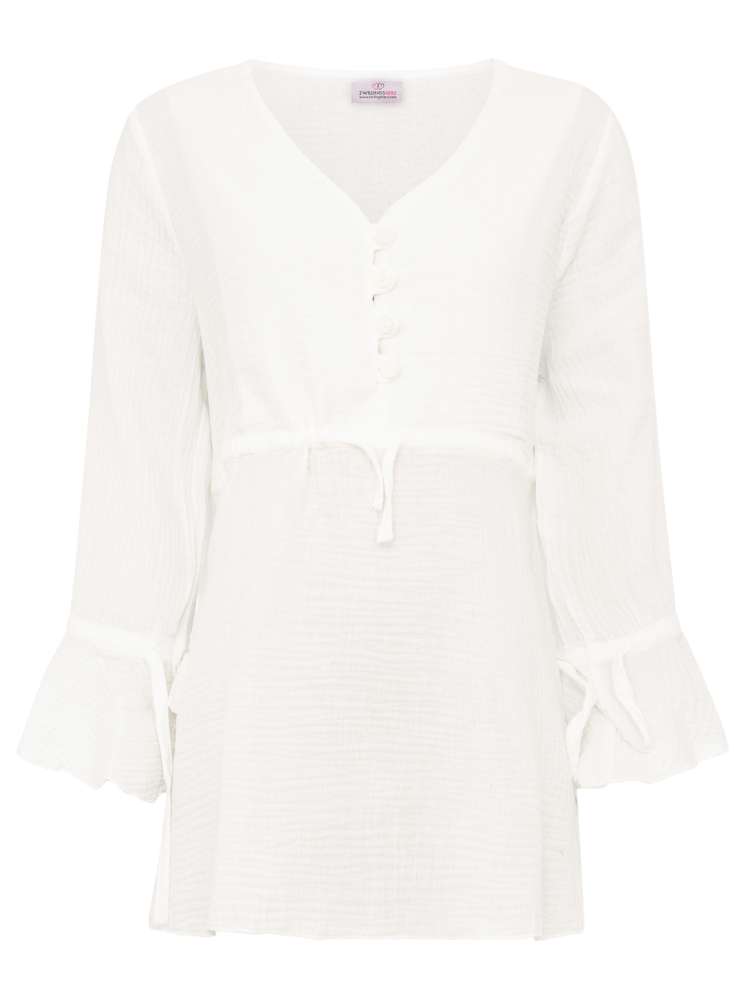 💕 Zwillingsherz Bluse Musselin "BoHo" Tunika Weiß