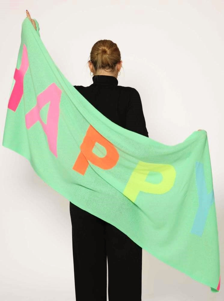 Unser Schal mit dem bezaubernden Schriftzug "Happy" in leuchtenden Neonfarben setzt ein fröhliches Statement. Aus 100 % reinem Kaschmir gefertigt, vereint er Komfort und Stil in einem Accessoire. Die auffällige Neon-Farbe des Schriftzugs verleiht dem Schal eine jugendliche und lebendige Ausstrahlung. Ein Must-Have für diejenigen, die Freude und Eleganz in einem exquisiten Accessoire suchen.