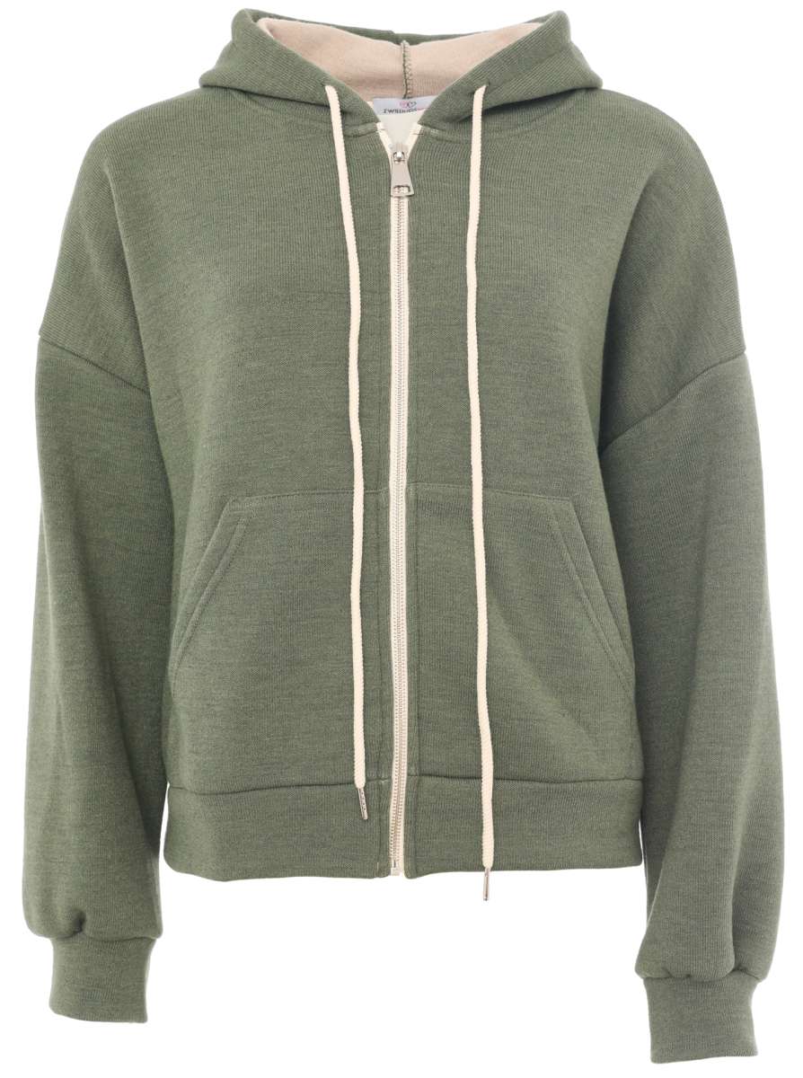 💕 Zwillingsherz Zip Sweatjacke Double Face "Uni & Tasche" Sweater Khaki