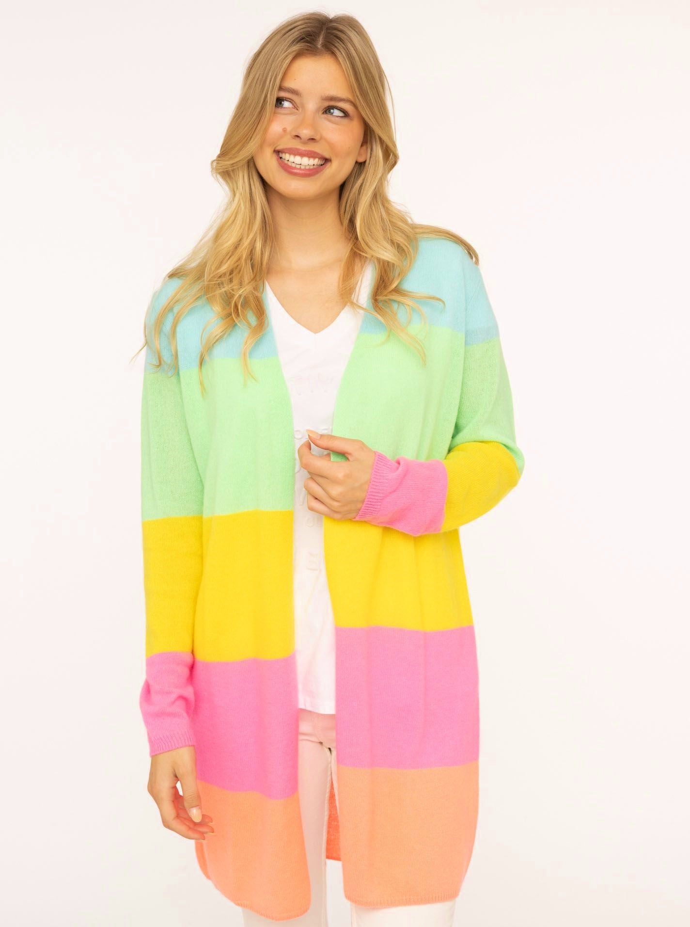 đź’•Zwillingsherz Strickjacke "Streifen" 100 % Kaschmir Loose Knit Bunt