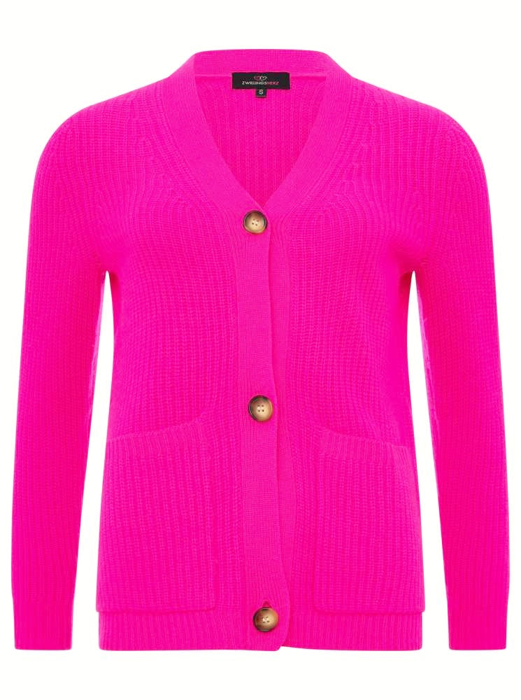đź’• Zwillingsherz Strickjacke "ZĂĽrich" Cardigan Riibbed kurz 100 % Kaschmir Neonpink