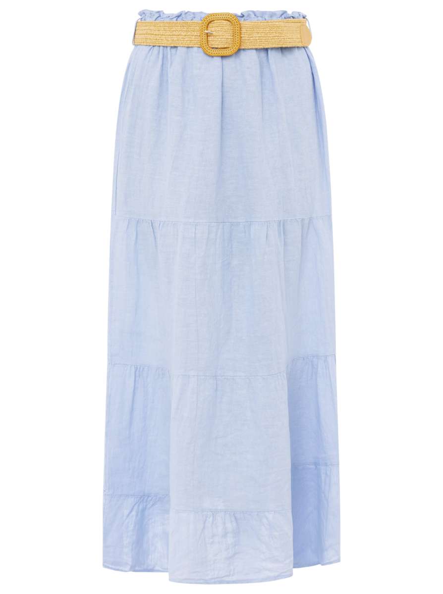 💕 Zwillingsherz 100% Leinen Rock "Uni & Gürtel" 100% Leinen Hellblau