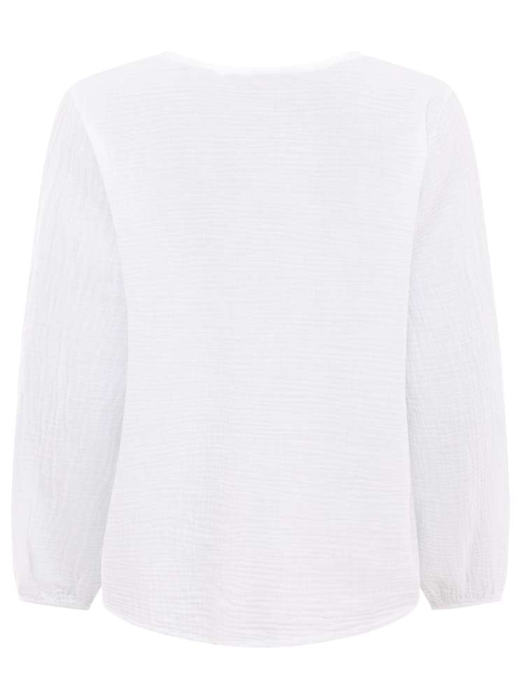 Eine luftige Musselin-Bluse mit einer charmanten Schleife und elastischen Armbändern. Hergestellt aus 100 % Baumwolle für ultimativen Komfort und Atmungsaktivität.