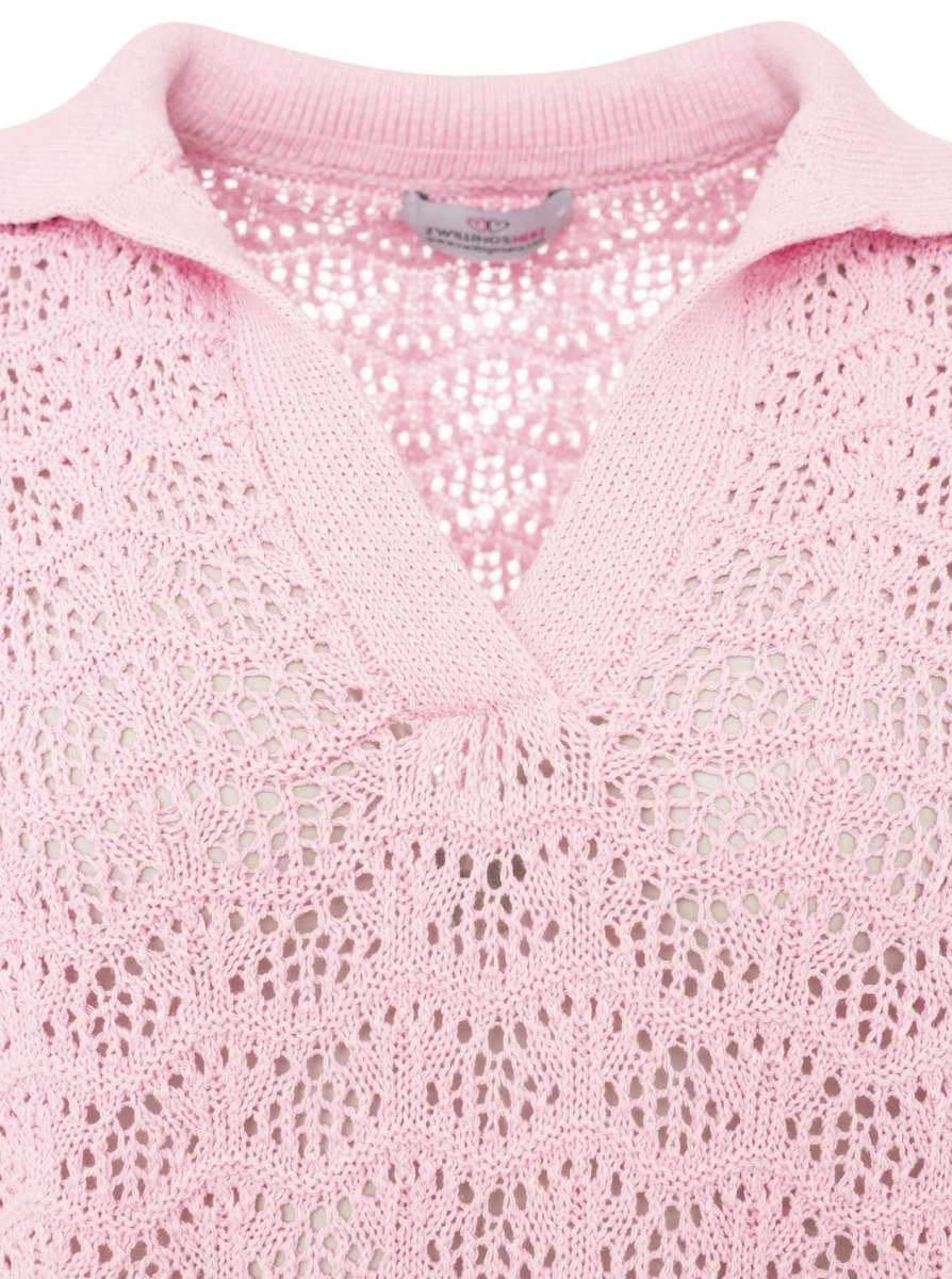 đź’• Zwillingsherz Polo Strick Shirt "Ajour" Kurzarmpullover Rosa