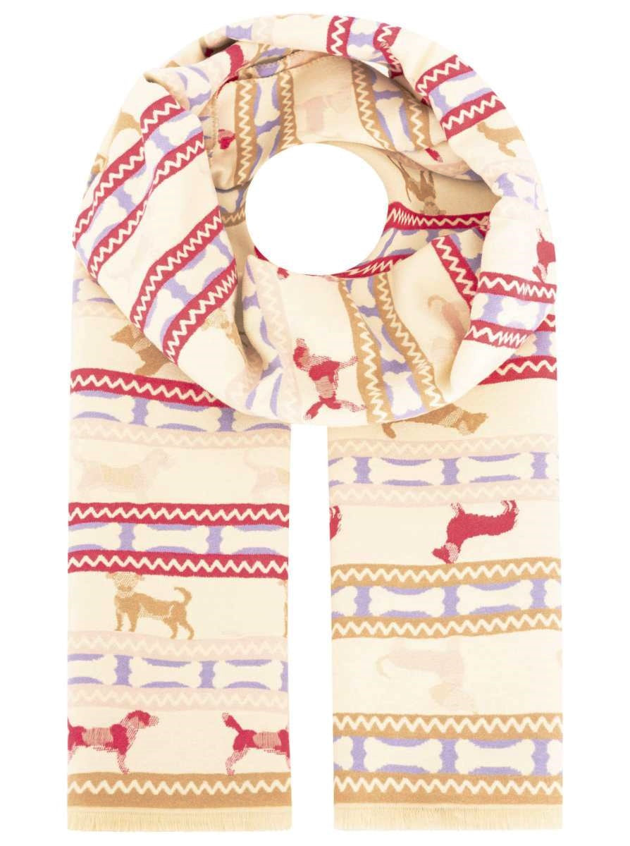 Der Schal "Bone & Buddy" überzeugt mit liebevollem Hundemotiv und weichem Material – ideal für gemütliche, tierliebe Looks.