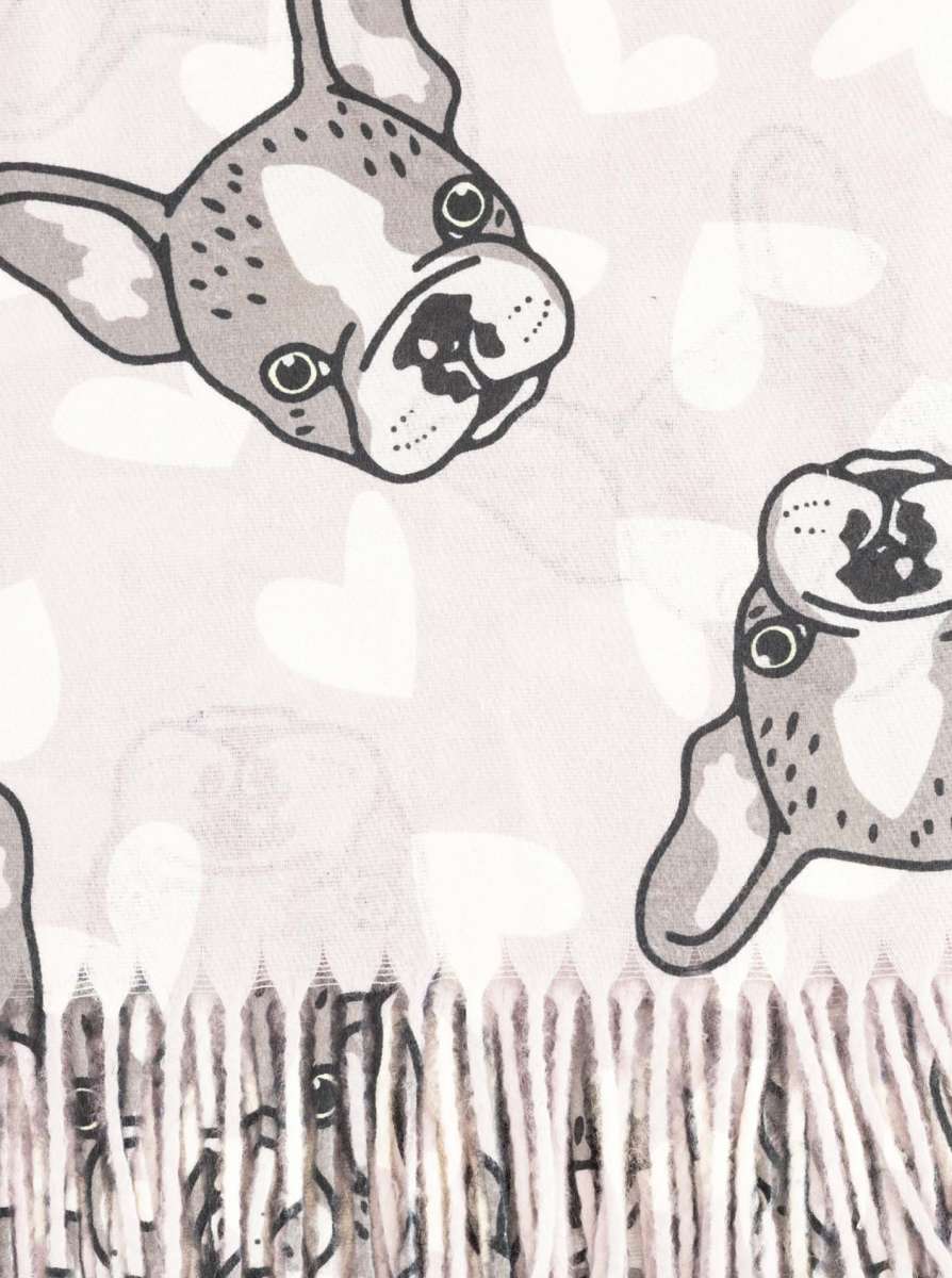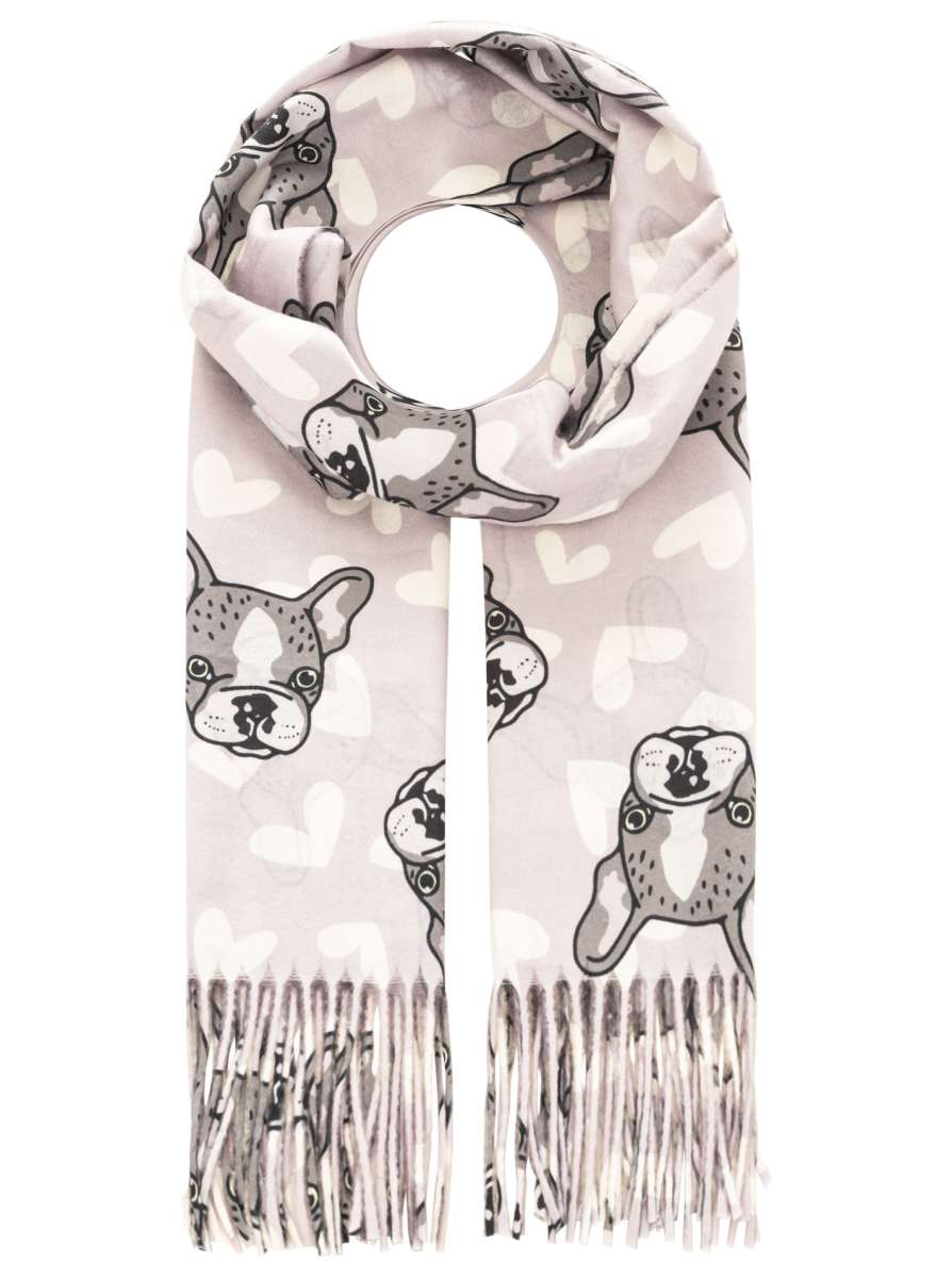 Der Schal "Frenchie Love" überzeugt mit süßem Frenchie-Print und weichem Stoff – ideal für gemütliche, liebevolle Looks.