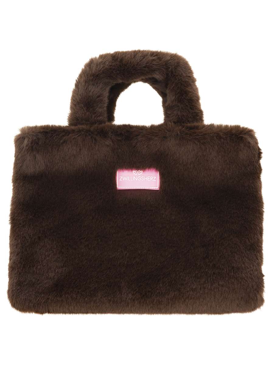 💕 Zwillingsherz Shopper klein "Fake Fur & Patch" Tasche Braun