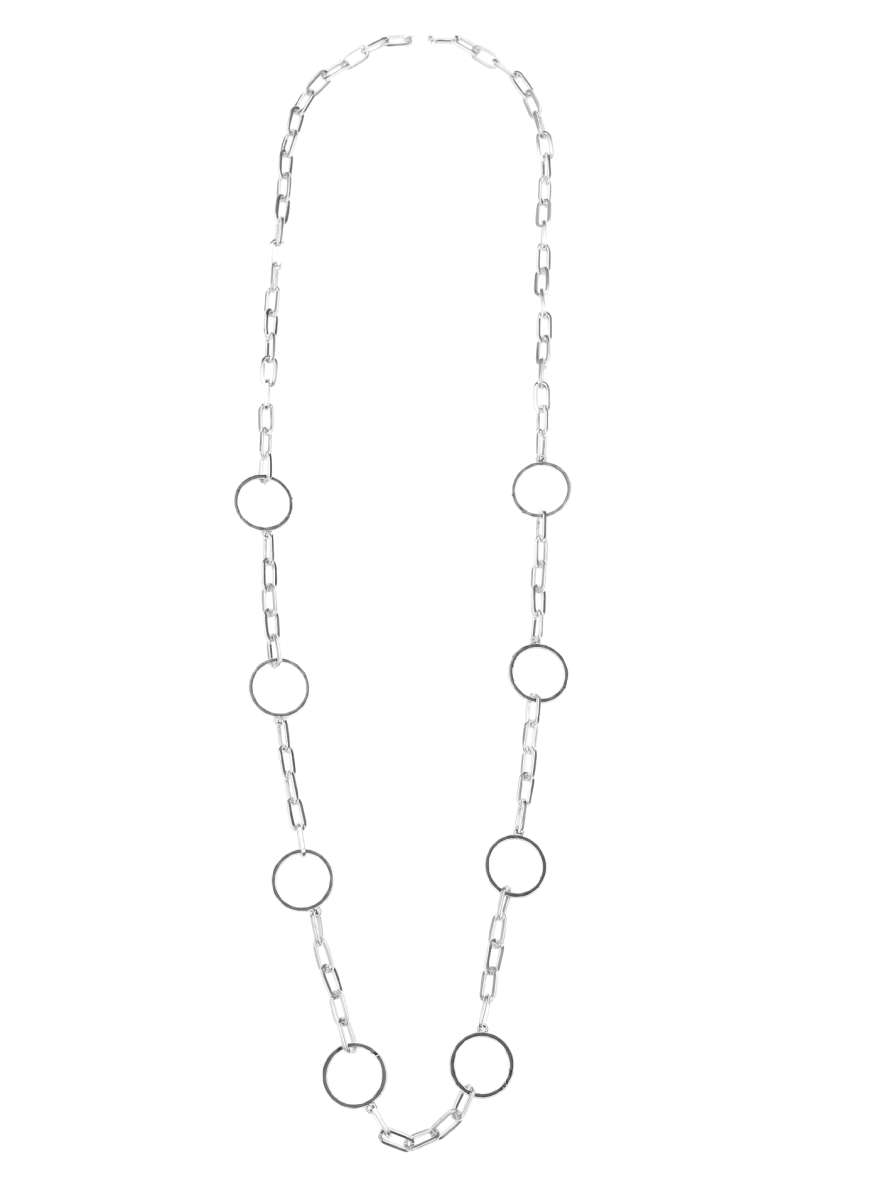 Lange Kette mit modernen, ovalen Kettengliedern und Kreisen