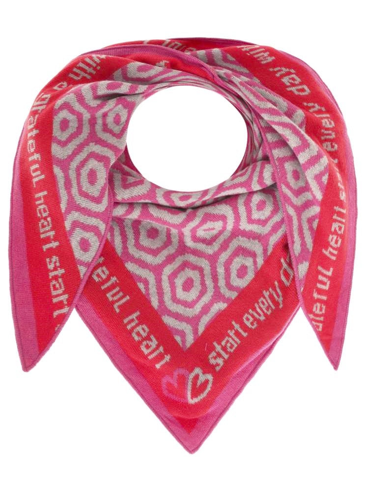 💕 Zwillingsherz Dreieckstuch "Seventies" Wolle Kaschmir Grau Coralle Pink