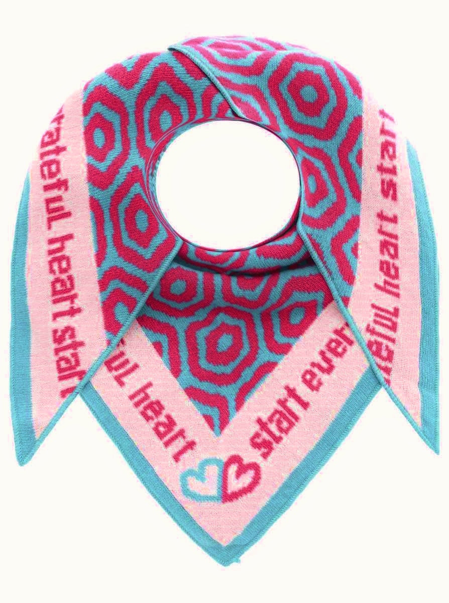 💕 Zwillingsherz Dreieckstuch "Seventies" Wolle Kaschmir Türkis Pink