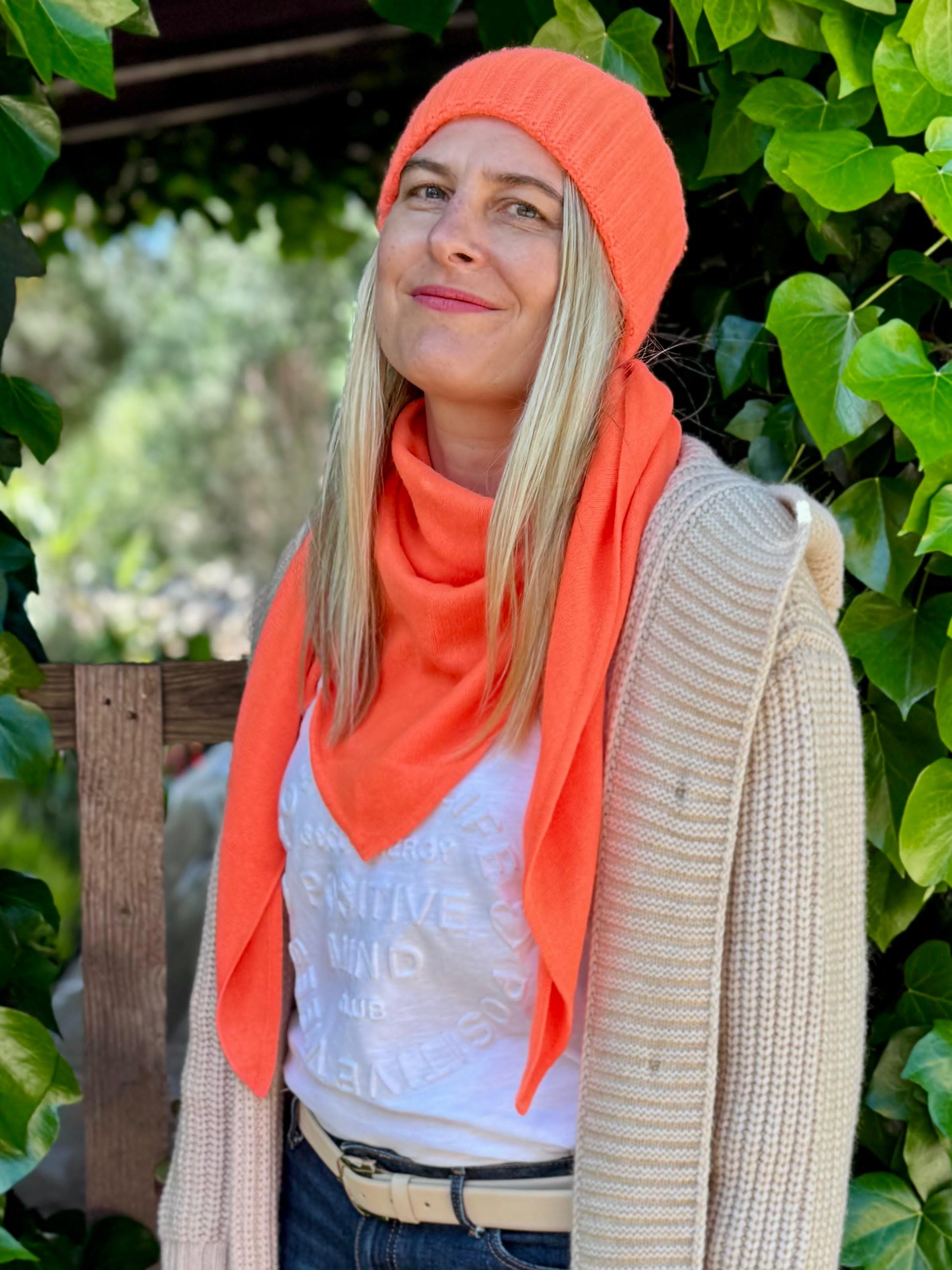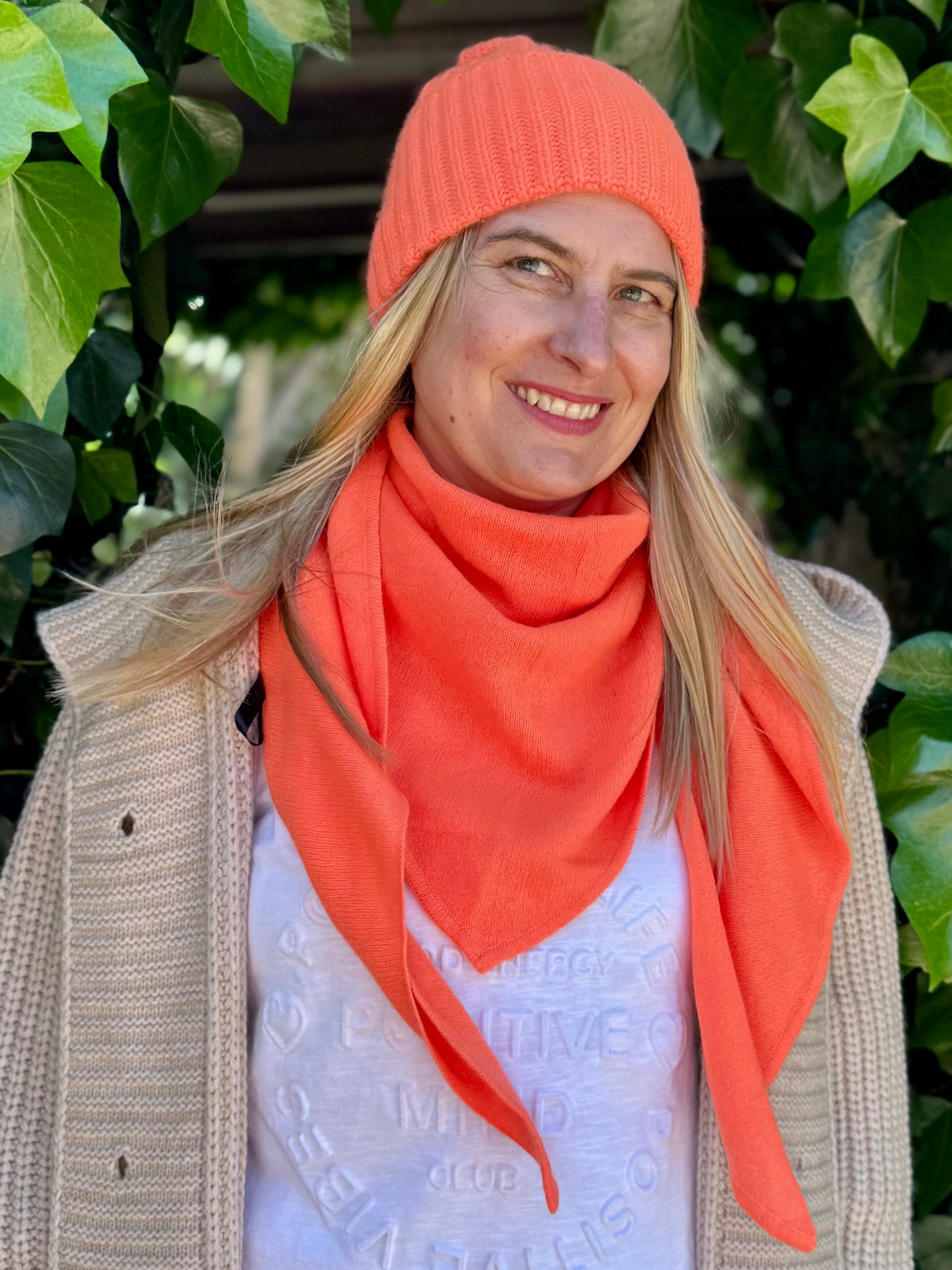 100 % Kaschmir Dreieckstuch leuchtendes Orange