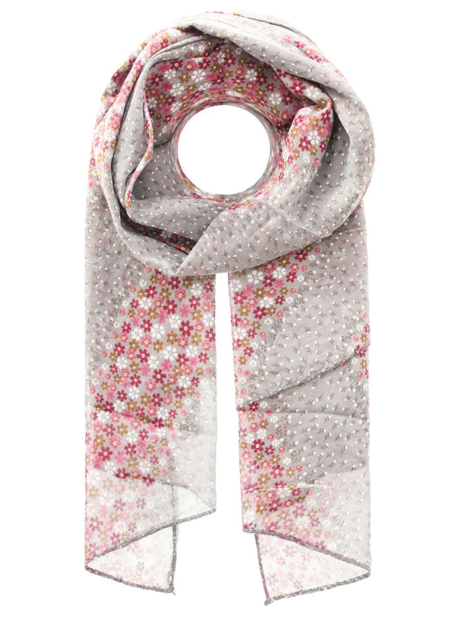 Schal Tuch "Blümchen Streifen" Baumwolle Seide Grau