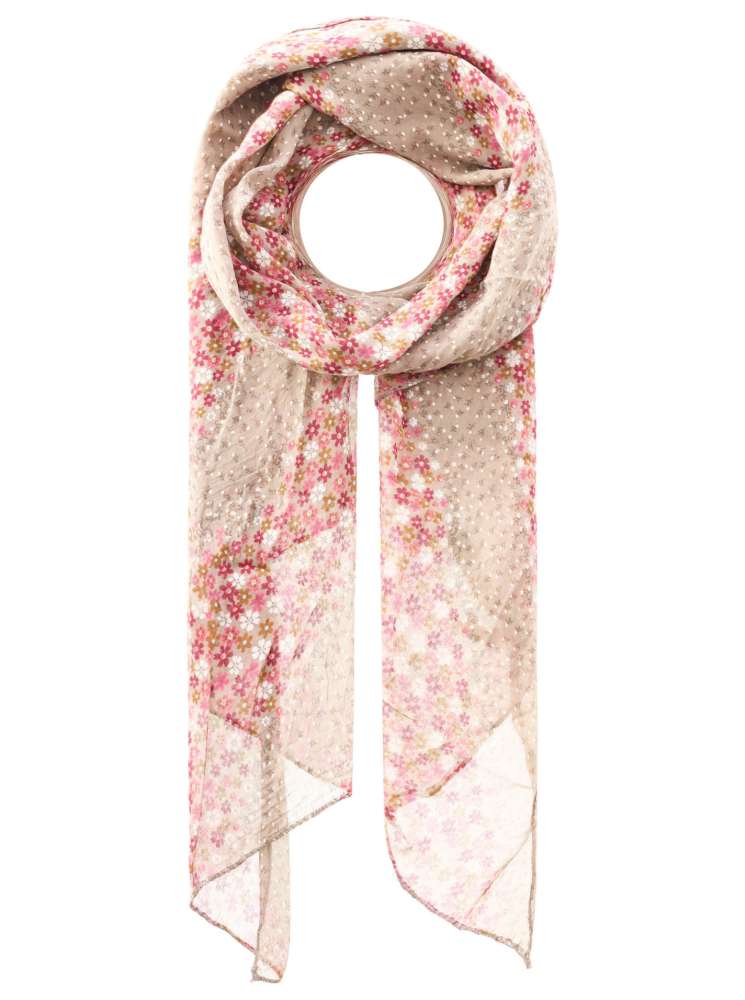Schal Tuch "Blümchen Streifen" Baumwolle Seide Taupe