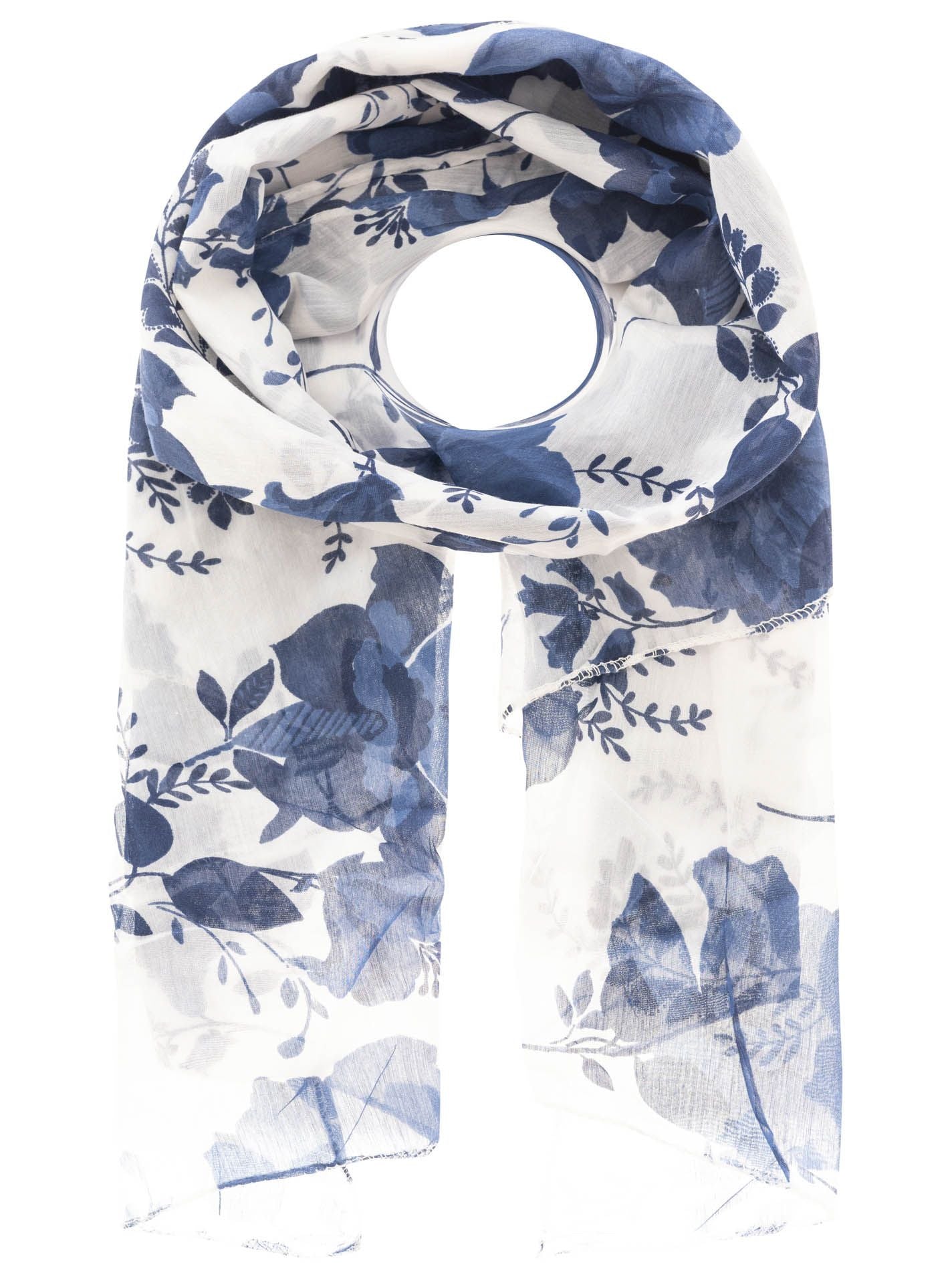 Schal Tuch "Floral Fantasy" Baumwolle Seide Blau