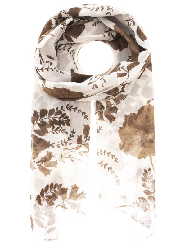 Schal Tuch "Floral Fantasy" Baumwolle Seide Braun