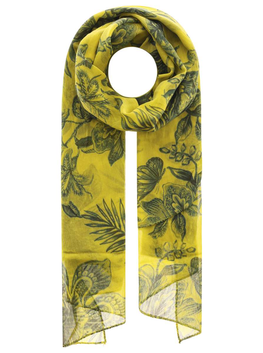Schal Tuch "Garten" Baumwolle Seide Gelb