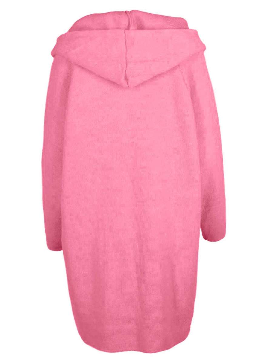 Knielange Strickjacke mit seitlichen Taschen und Kapuze