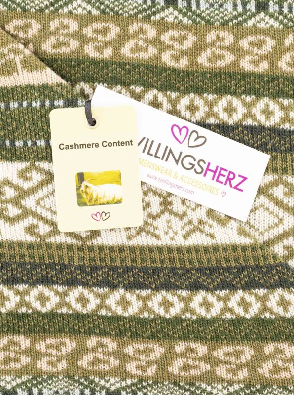 💕 Zwillingsherz Dreieckstuch "Oslo" Norwegermuster Wolle Kaschmir Grün