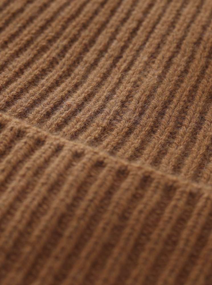 💕 Zwillingsherz Mütze "Ribbon Pattern" 100 % Kaschmir Cognac