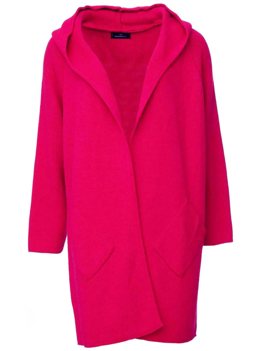 Knielange Strickjacke mit seitlichen Taschen und Kapuze